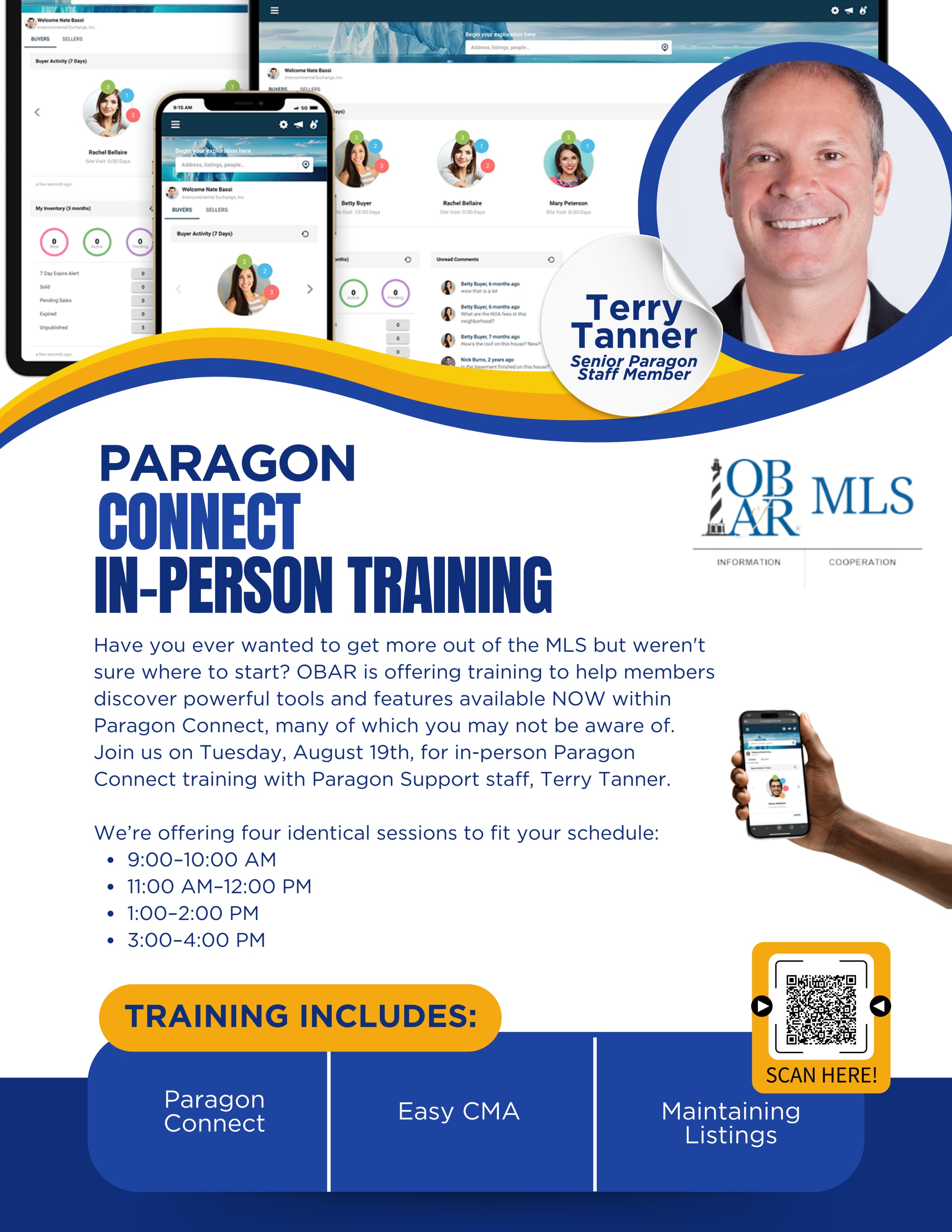 We’re offering four identical sessions to fit your schedule, with topics including EasyCMA and maintaining listings in Paragon Connect.